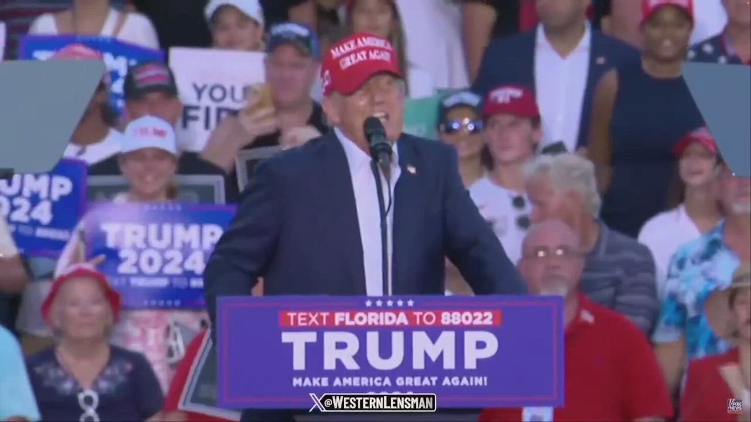 フロリダ州ドラルでの集会で、トランプはジョー・バイデンに100万ドルのチャリティ・ゴルフ・マッチを挑み、バイデンに20打のアドバンテージを与えた。